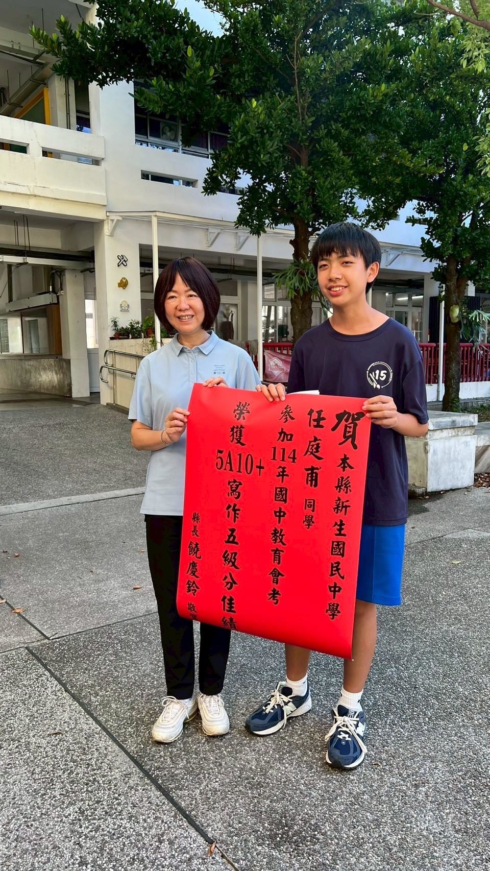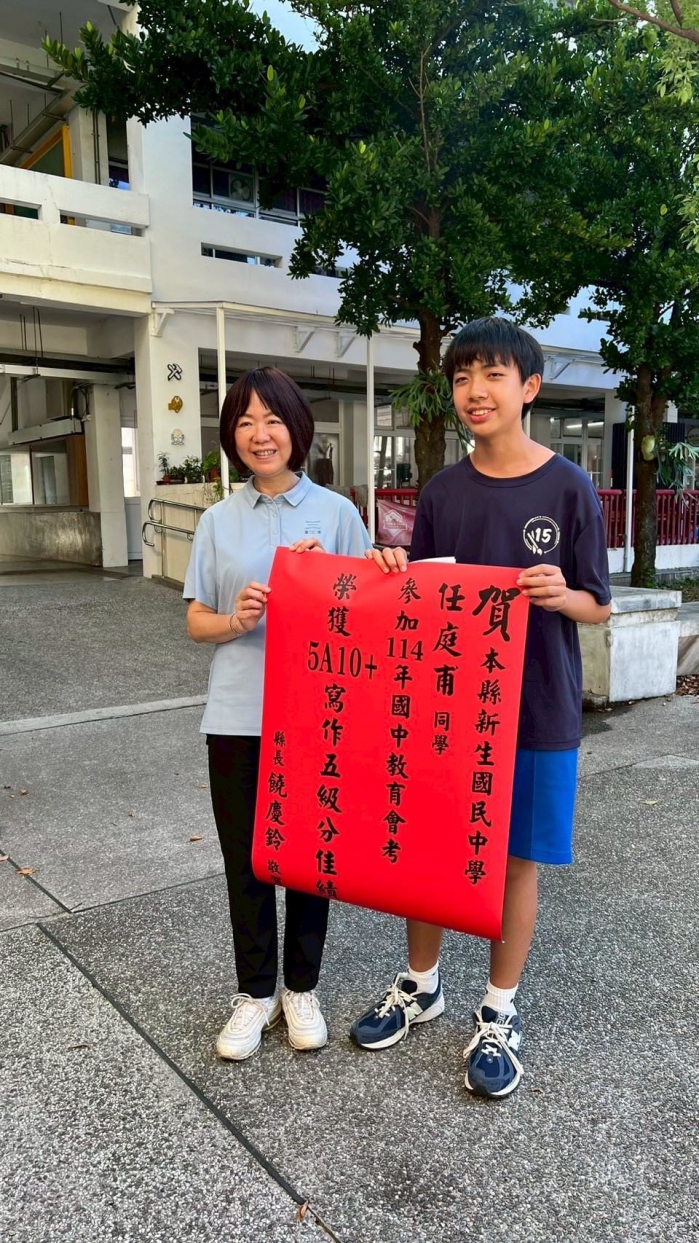 其中,新生國中黃柏諭與任庭甫兩位同學更脫穎而出,榮獲5A10+的卓越成績,為臺東縣教育寫下亮眼新頁。另外特別值得一提的是,新港國中今年有一位學生取得5A2+的成績,顯示該校在教學設計與學力紮根方面的用心與努力,有效推動基礎學力的深耕與落實,展現教育品質的提升。