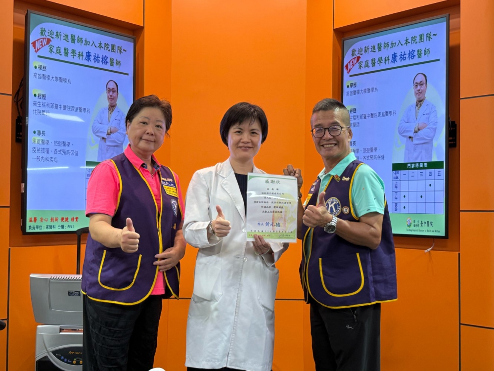 衛生福利部臺中醫院廖妙淯副院長表示,輪椅對醫院對許多長輩,行動不便的病友來說,是最重要的交通工具,因為到醫院就醫的病友使用頻次高,所以需要定期更新,感謝同心獅子會前會長陳淑暖促成這次的公益活動,也感謝同心獅子會、中美國際同濟會多年來持續支持醫院輪椅等物資更新,她代表病友感謝同心獅子會的大愛,讓來到臺中醫院就醫的病友有愛無礙。