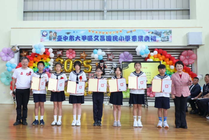 她感謝校方、家長會與地方民代的積極爭取,讓文昌國小的禮堂順利完工啟用,也感謝市議會支持預算,讓市府得以積極推動教育建設。另也勉勵畢業生要心懷感恩,感謝老師、同學、家人陪伴與照顧,畢業不是結束而是新的開始,未來邁向國中、高中,將有更多夥伴同行。