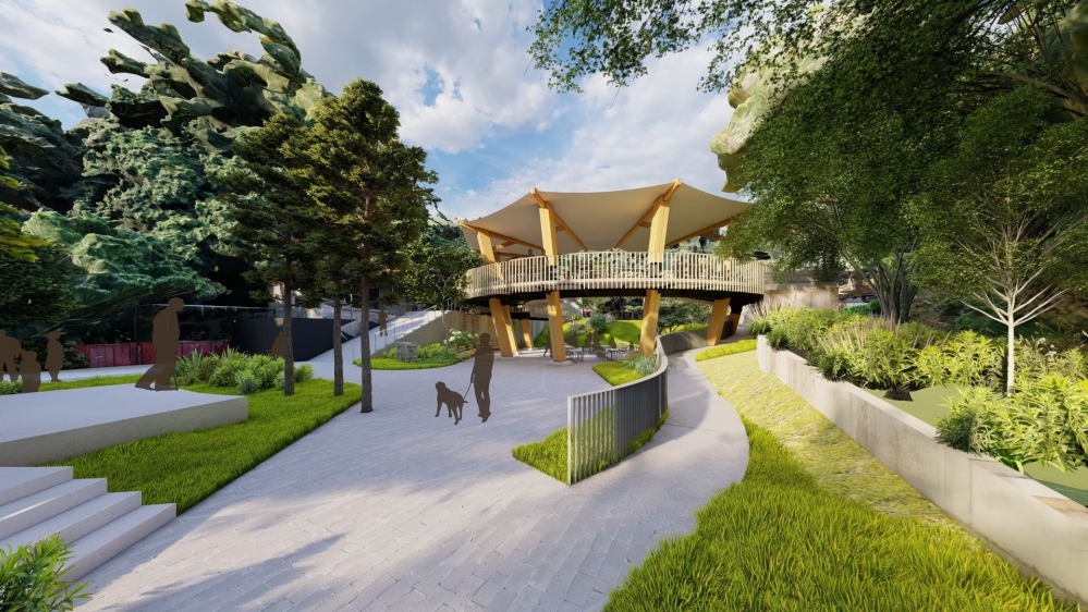 建設局指出,觀音亭休憩平台位於登山步道的中繼站,整體設計以低彩度色調融入自然環境,並因應未來人流增加及夏季日曬,特別擴大平台面積並增設遮陽設施,遮蔽範圍達234平方公尺,且具可收折功能,提升使用彈性與整體舒適度。