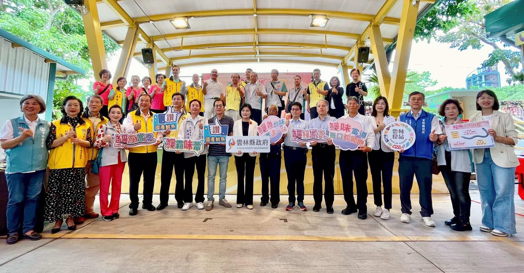 ▲第一排(左起)台北農產運銷公司總經理吳芳銘、雲林縣縣長張麗善、雲林縣第二鰻蝦生產合作社理事主席林欲達、農業部漁業署副署長陳建佑;(右起)第3位:雲林縣農業處長魏勝德、第4位:新北市農會趙家玉主秘