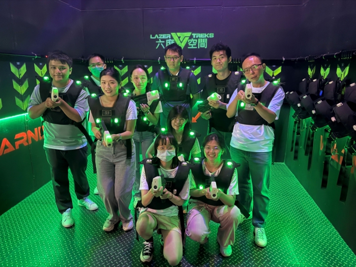 參加者一早前往「六度空間台中分店」展開鐳射光戰,大家身穿專業裝備、穿梭於障礙場景之間,透過團隊合作與戰術分工激發默契,拉近彼此距離。