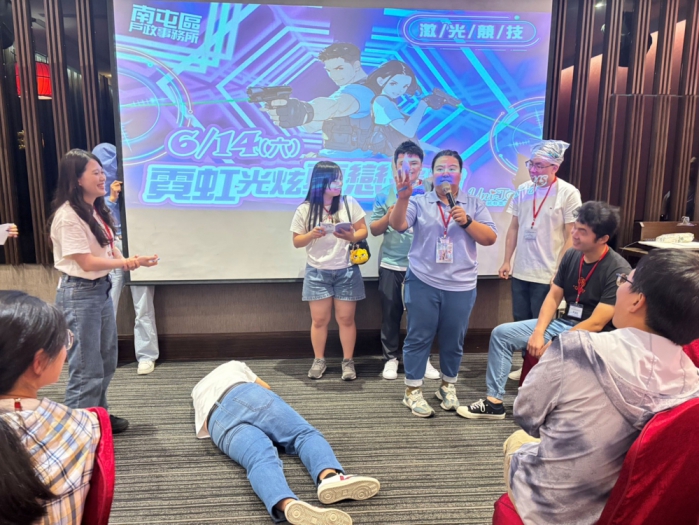 南屯戶所主任林峰輝表示,此次活動特別設計「光彈派對戀習三部曲」,巧妙結合鐳射競技與K歌互動,讓參與者在動靜交錯的過程中逐步建立默契。