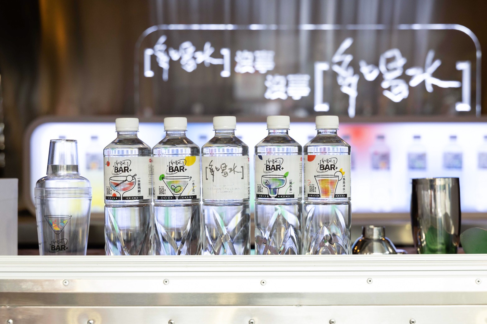「多喝水」表示,這次活動以年輕人最流行的開放式酒吧文化為靈感,現場設計全面仿照實體酒吧運作流程,包括空間氛圍、調飲秀、水單設計、音樂DJ,甚至加入「水測牆」與趣味互動裝置,但特別的是,裡面所有飲品原料都是「水」,期望以具有識別度的創意,重新推廣健康飲水習慣。