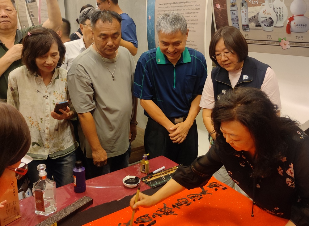 (記者任芳葵嘉義報導) 嘉義酒廠勇奪2025舊金山世界烈酒大賽雙金牌獎,15日搭配嘉義縣書法學會會員聯展歡慶,力邀今年在故宮南院春聯揮毫的書法名家楊貴真老師,以雙金牌得獎的白酒入墨,現場寫紅榜祝賀,詩酒翰墨飄香歡慶烈酒競賽奪金。