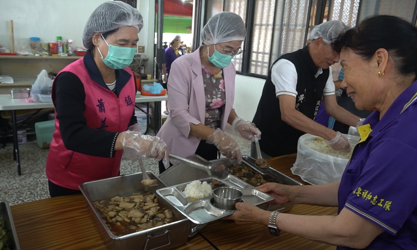 正式啟用首日由副縣長謝淑亞、北港鎮長蕭美文等多位貴賓,親自為長輩打飯、打菜讓長者享受豐盛的午餐。(圖/記者蘇峯毅攝)