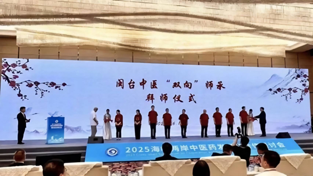 最引人注目的當屬閩臺中醫「雙向」師承拜師儀式。舞臺上,經師生雙向自願選擇確定的首批9名閩臺「雙向」師承老師與繼承人,依次完成傳統拜師禮儀。敬茶、鞠躬,每一個動作都飽含著對中醫藥傳承的敬意與期待。