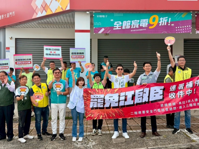 中八領銜人廖芝晏表示,我們可以看到江啟臣,在立法院躲在傅崐萁和韓國瑜當國民黨的魁儡,也看到在台中江啟程躲在盧秀燕的背後剪綵一留作是零分,只想當個國民黨媽寶,準備等盧秀燕市長傳市長大位給他,我們不能讓江啟臣繼續躲在背後,連署還缺1500份,我們最後衝刺,下架這種不適任立委。