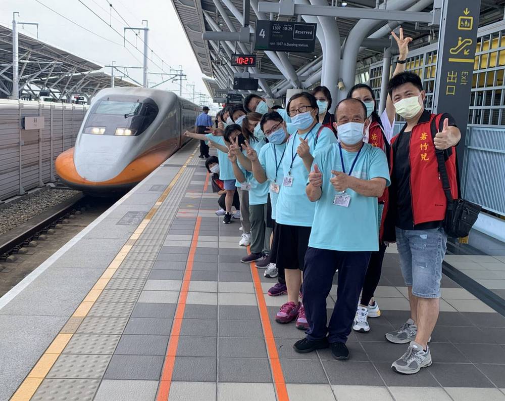台灣高鐵嘉義站關懷地方協助「若竹兒智能發展中心」的院生們,搭車前往高雄實現他們心中期待已久的旅遊夢想。(圖/高鐵嘉義站提供)