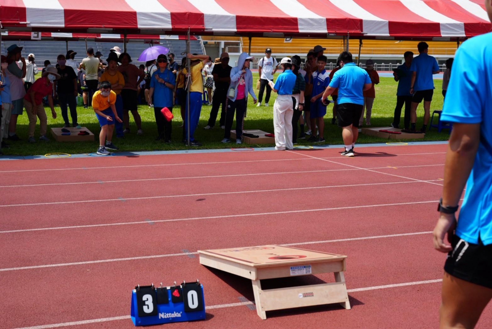 活動會場也設置多樣化運動攤位體驗,包括樂樂棒球、桌上冰壺、槌球、射箭、足球、KAN JAM、登階及布袋球等項目,讓學生、家長及現場貴賓親自參與。透過寓教於樂的設計,不僅促進親子互動,也讓孩子在遊戲中鍛鍊體能,培養運動興趣。