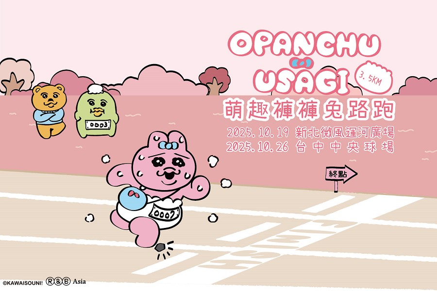 結合日本超人氣角色「Opanchu Usagi(褲褲兔)」官方授權,由全統運動主辦,首度在台推出主題路跑《2025萌趣褲褲兔路跑》。全台粉絲引頸期盼的療癒之旅,將於新北、台中雙城開跑,分別於10月19日(日)於新北微風運河廣場、10月26日(日)於台中中央球場熱鬧舉行,全程3.5公里,只要願意出發,每一步都是勇氣的象徵。