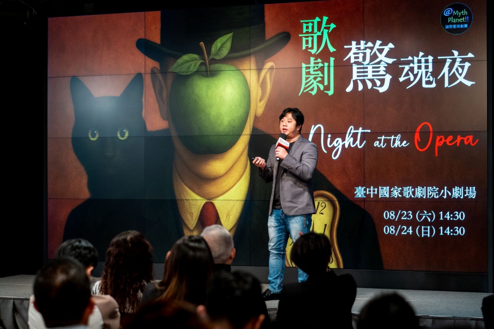 謎思星球劇團全新製作《歌劇驚魂夜》以美術館為場景,透過融合美術、音樂與文學的實驗性編排,帶領觀眾隨劇情穿梭於藝術品與歌劇名曲之間。從克林姆的名畫《吻》連結至普契尼《波希米亞人》等經典歌劇,呈現歌劇的當代表現力與想像空間。劇團由女高音許育甄擔任藝術總監、陳仕弦擔任導演,自2018年創團以來持續推動親子歌劇與藝術教育,以創新精神探索歌劇的新樣貌。導演陳仕弦說,劇團的力氣很小,但是野心很大,希望填補古典歌劇和現代觀眾間的鴻溝,過去曾製作兒童版的《魔笛》,好評巡演30場,也用耳熟能詳的歌劇選粹打造《綠野仙蹤》、《寂寞拍賣師》,還曾在臺北白晝之夜到士林夜市唱〈飲酒歌〉。劇團去年在歌劇院演出輕歌劇《蝙蝠》,打開連通小劇場和戶外劇場之間的防火牆,讓觀眾跟著主角進入劇情中。今年推出的新製作《歌劇驚魂夜》是過往作品的集大成,讓美術館裡的雕像和名畫活過來,用歌劇結合劇場元素,歌手將在觀眾席間遊走,帶來新鮮的沉浸式互動。記者會現場也由女高音鍾心欣、郭若璿演唱《霍夫曼的故事》中的〈船歌〉,充滿威尼斯浪漫風情。8月23、24日邀請觀眾走進小劇場,體驗一場融合古典與當代的跨界演出。