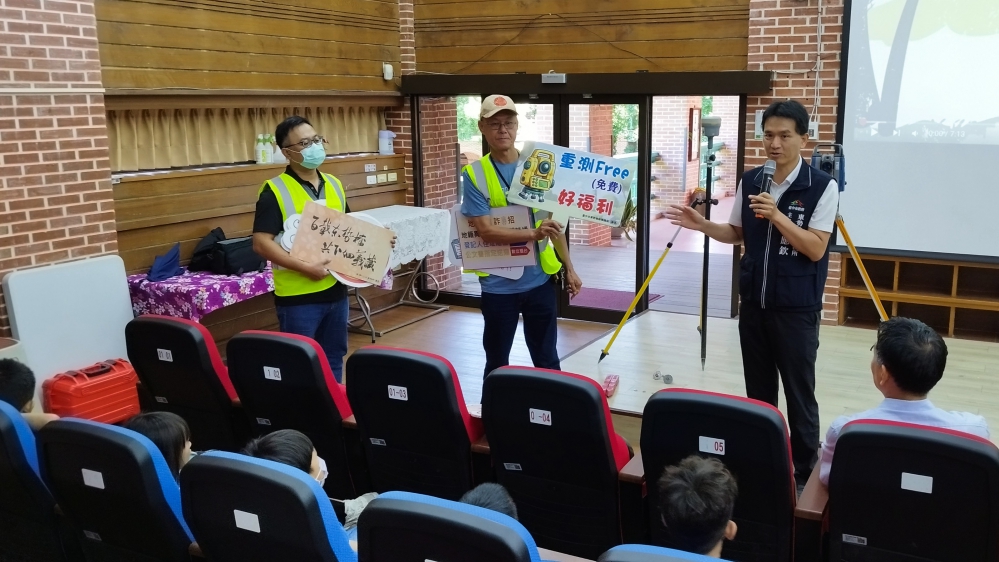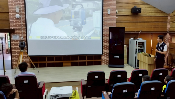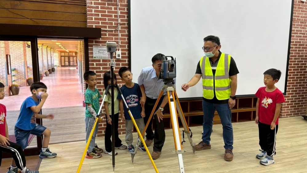 【記者林獻元台中報導】台中市東勢地政事務所27日於東勢區中科國小朝會,對全校播放重測區土地調查「走讀中嵙重測區-羅校長帶領探索」文史景點紀錄片,並帶領學子們進行重測儀器的互動式體驗,學生們都對地政機關於辦理地籍圖重測作業時,還能同時記錄他們熟悉的當地景物特別有感。