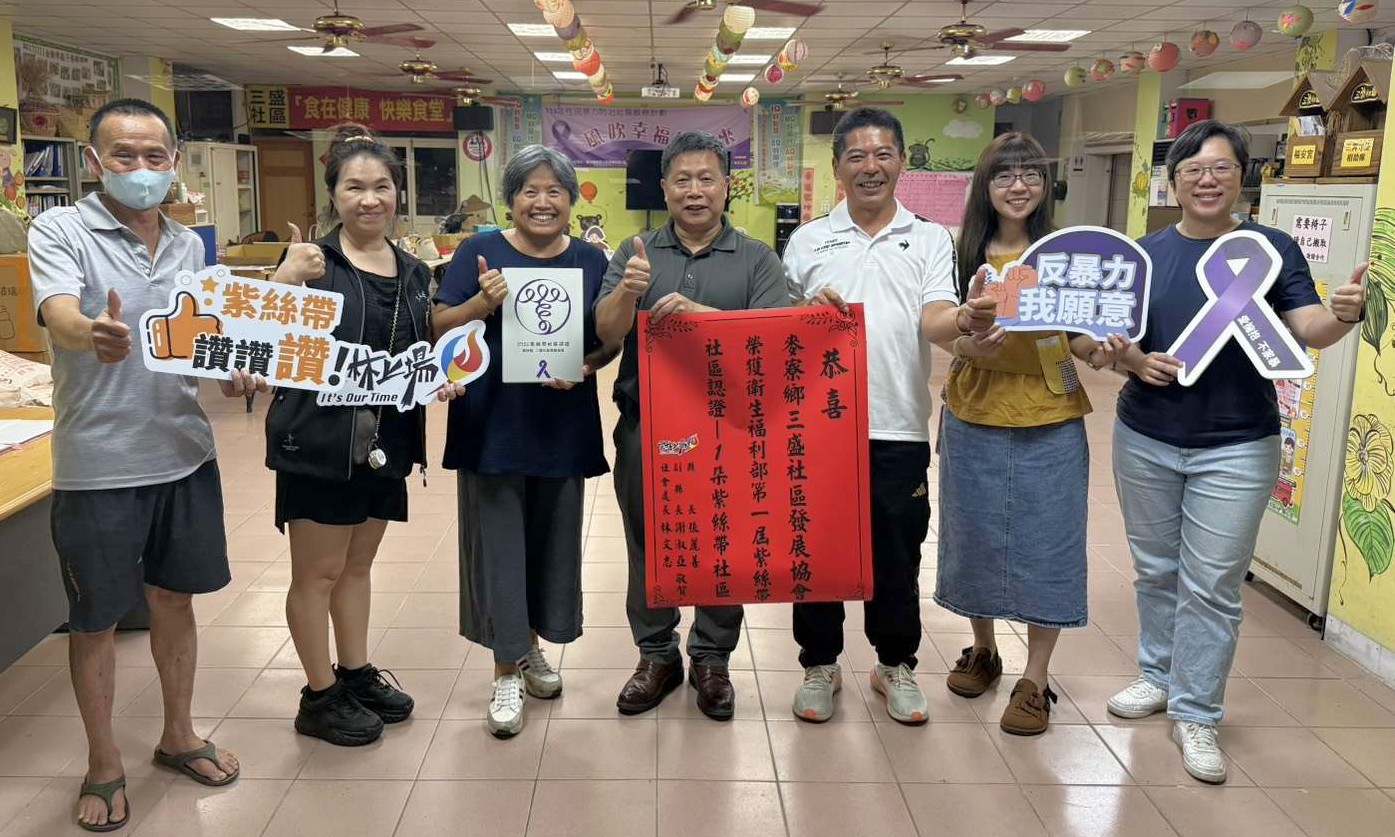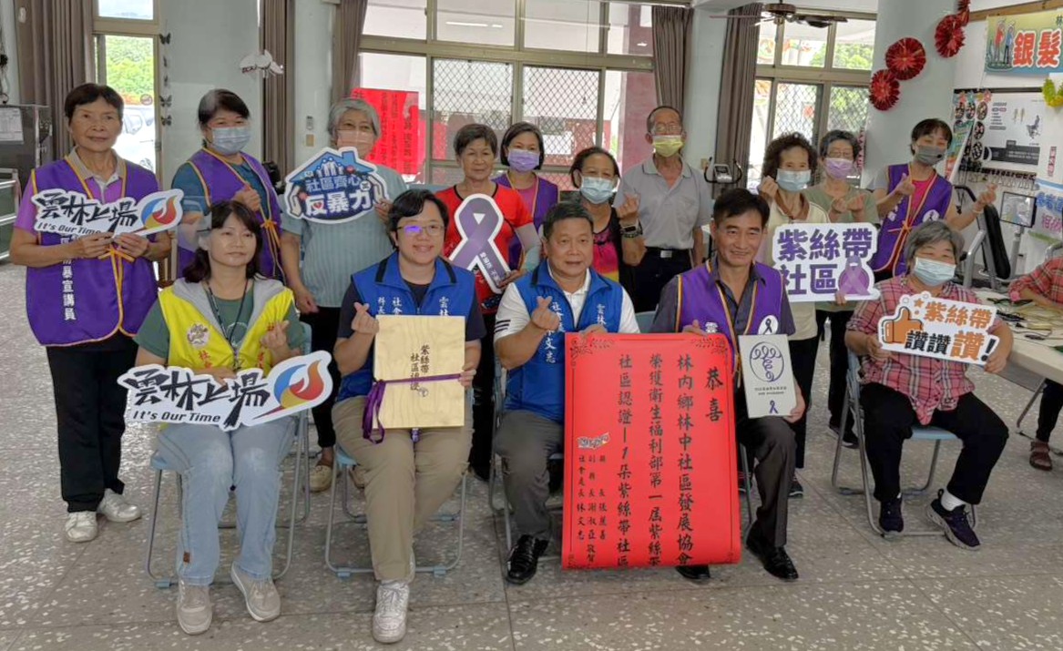【記者蘇峯毅/雲林報導】雲林縣在推動性別暴力防治社區初級預防工作再創佳績,麥寮鄉三盛社區發展協會、古坑鄉古坑社區發展協會及林內鄉林中社區發展協會,於衛生福利部舉辦的「第一屆紫絲帶社區認證計畫」中,皆榮獲一朵紫絲帶認證殊榮,展現地方社區在防暴教育上的努力成果。