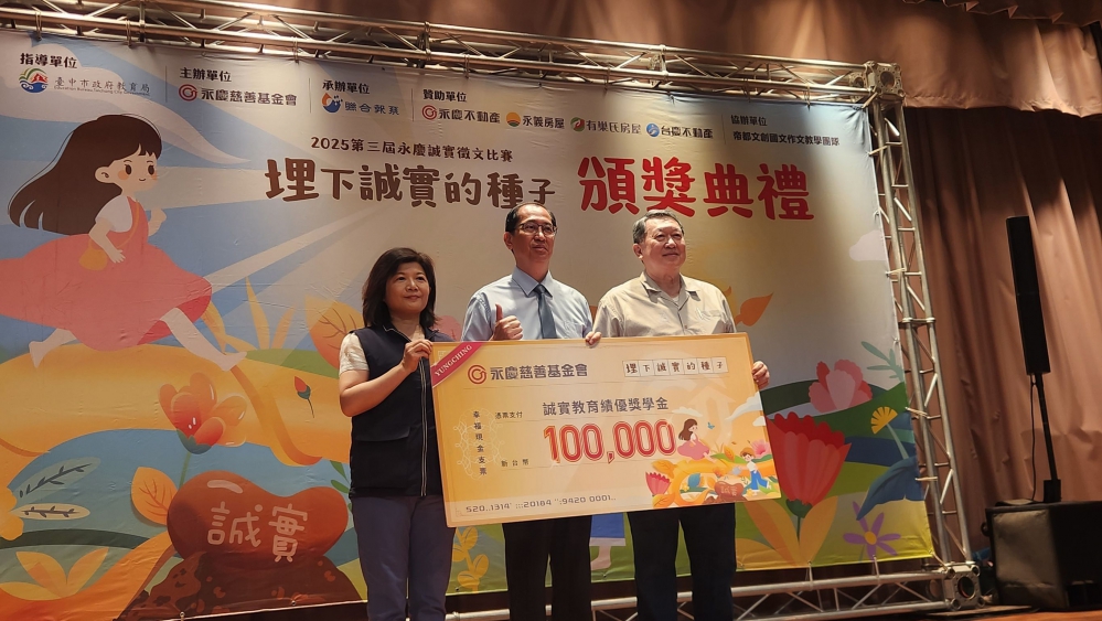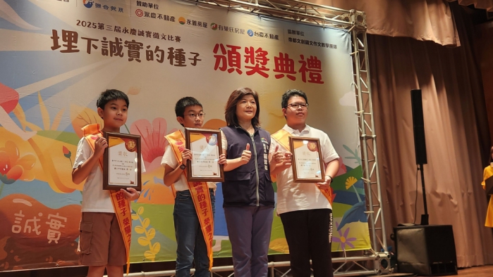 【記者林獻元台中報導】為落實誠實品德向下扎根,鼓勵學生透過寫作反思誠實的意義與價值,台中市政府教育局與永慶社會福利慈善事業基金會合作舉辦第三屆「埋下誠實的種子~永慶誠實徵文比賽」,28日於逢甲大學舉行頒獎典禮,台中市學生共有1369人參賽,其中70位脫穎而出,教育局肯定獲獎同學的努力,也期許他們成為「品德小天使」,持續在生活中實踐誠實與負責的態度,發揮正向影響力。