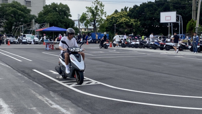 值得一提的是,當天正逢18歲生日的楊哲男,也是年紀最小的考生,他把考駕照當作自己的「成年禮」,興奮又緊張地說,「直線7秒」最有挑戰性,平常父親陪同練習,信心十足,「希望今天就能順利考取駕照,未來就能自己騎車上下課。」