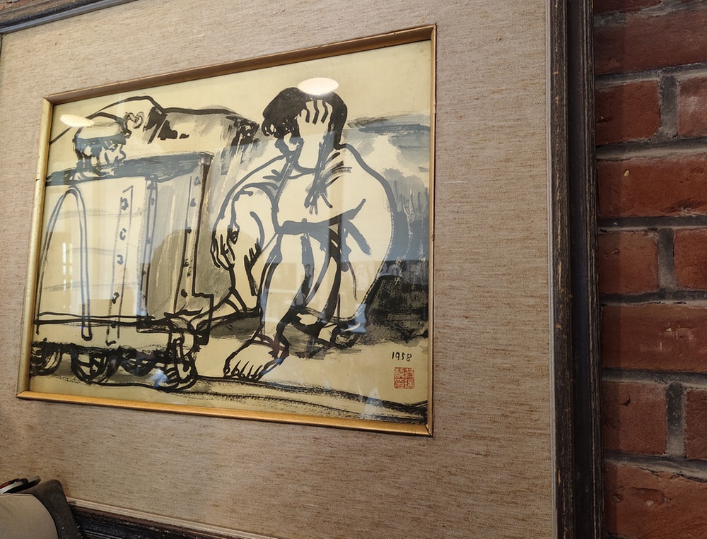 三十八年後,洪瑞麟作品於培桂堂再次與大眾見面,除了從基金會典藏精選的十六件礦工速寫與彩墨紙本,還有洪瑞麟家屬提供的1976年速寫〈工作後浴場〉,以及一件極為罕見的私人收藏,1946年的油畫〈礦工萬仔〉。十八幅作品都以礦工生活為主題,線條粗獷有力、墨色沉鬱深刻,展現藝術家對人性尊嚴與勞動價值的深刻凝視,令人動容。