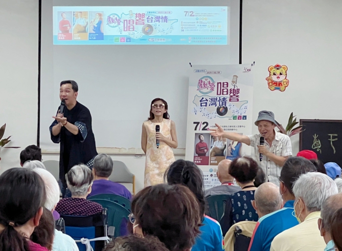 【記者周為政彰化報導】正聲廣播公司台中台公益腳步不停歇,7月2日舉辦「聲動傳愛~唱響台灣情」,邀請黑膠唱片收藏家陳明章以及李泳杰、紀乃菡兩位歌手連袂演出,將懷舊歌曲帶進彰化員林的廣成老人安養中心與二林的德安護理之家暨日間照顧中心,許多長輩隨著音樂哼唱,同時搖擺身體、揮舞手臂,彷彿讓他們走進時光隧道回到過去,年少回憶隨即湧現。