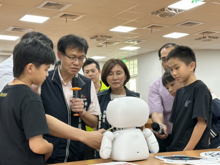 【記者林獻元台中報導】台灣引領世界科技潮流,台中市AI教育也正快速向下扎根!國民黨台中市議員黃馨慧3日關心國小科技教育,由「AI人工智能交握學會」主辦,在西屯國安國小舉辦「AI機器人教育夏令營」共計由25所國中小舉辦,教育局長蔣偉民與機器人互動創意十足,落實推進台中AI教育邁向下一個重要里程碑。