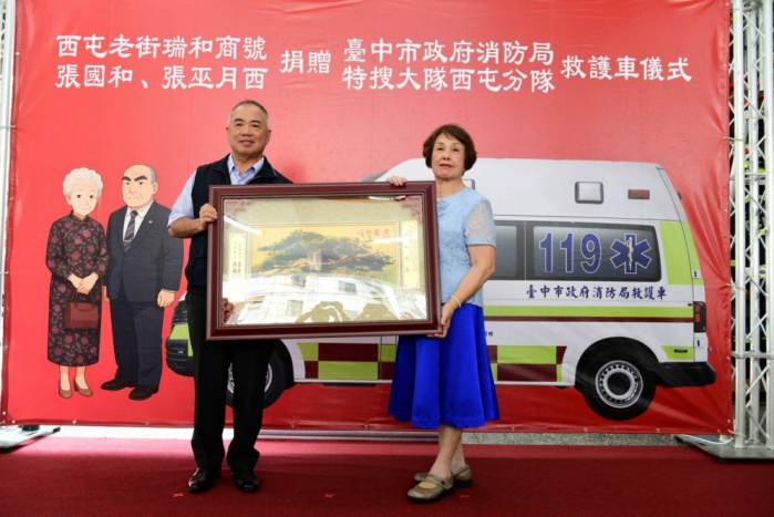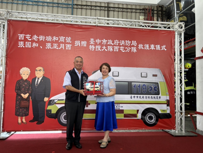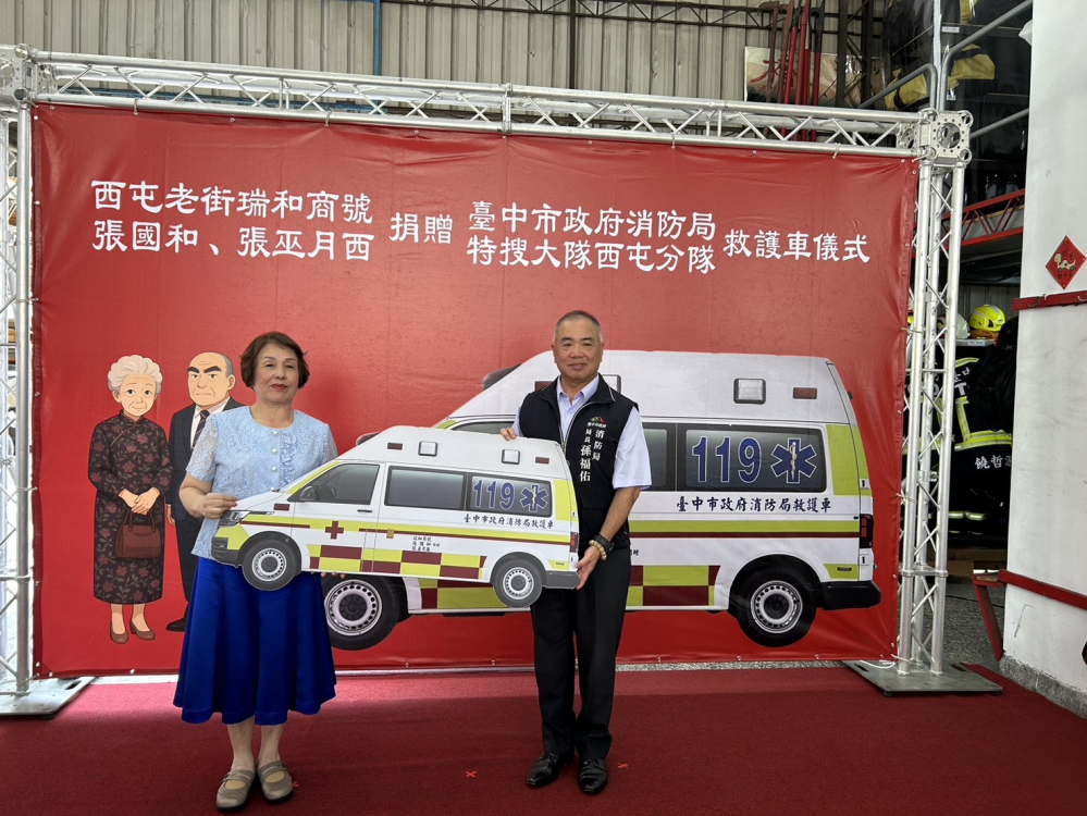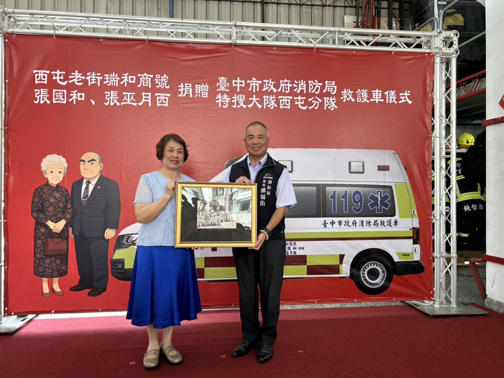 【記者許順德台中報導】台中市西屯老街瑞和商號的後輩子女,以張國和先生、張巫月西女士名義,於3日捐贈消防局特搜大隊西屯分隊一輛高規格、配備齊全的救護車,捐贈儀式在西屯分隊舉行,並邀請多位貴賓朋友共同見證這場具重大意義的公益善舉。