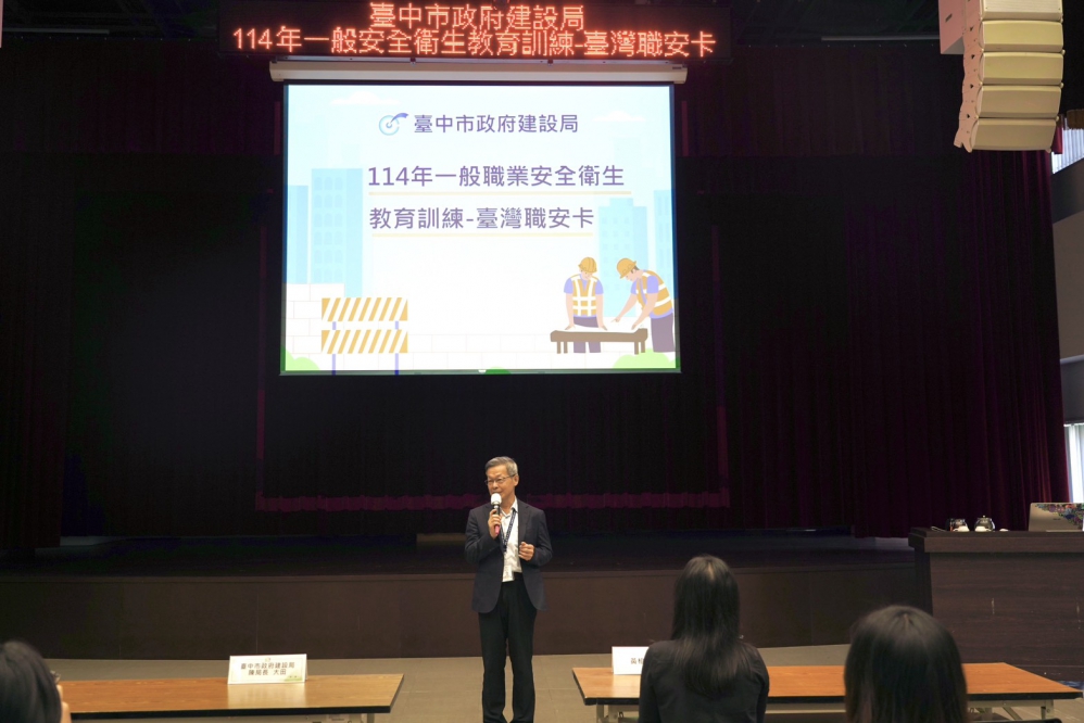 【記者林獻元台中報導】台中市長盧秀燕重視公共工程施工安全,致力推動「安全第一、預防為先」的施政理念。中市府建設局4日舉辦「114年一般安全衛生教育訓練—台灣職安卡」,由局長陳大田主持,約有61位新進同仁參訓,課程與台中市勞動檢查處合作邀請麗明營造職安管理師黃柏惠授課,針對制度面與實務面進行6小時講解,課後辦理測驗,合格者可取得職安卡;期透過訓練,強化職場安全文化,打造安心公共工程環境。