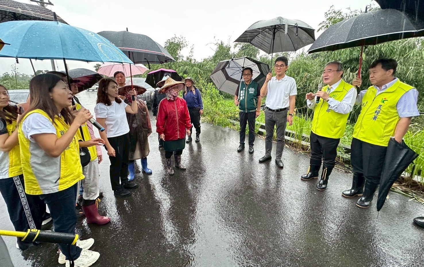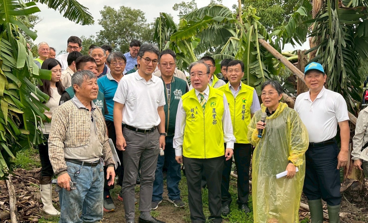 立法委員劉建國於8日邀請農業部次長胡忠一與農糧署長姚士源等人赴古坑、斗南等地深入會勘,期盼儘速啟動災損補助。(圖/記者蘇峯毅攝)