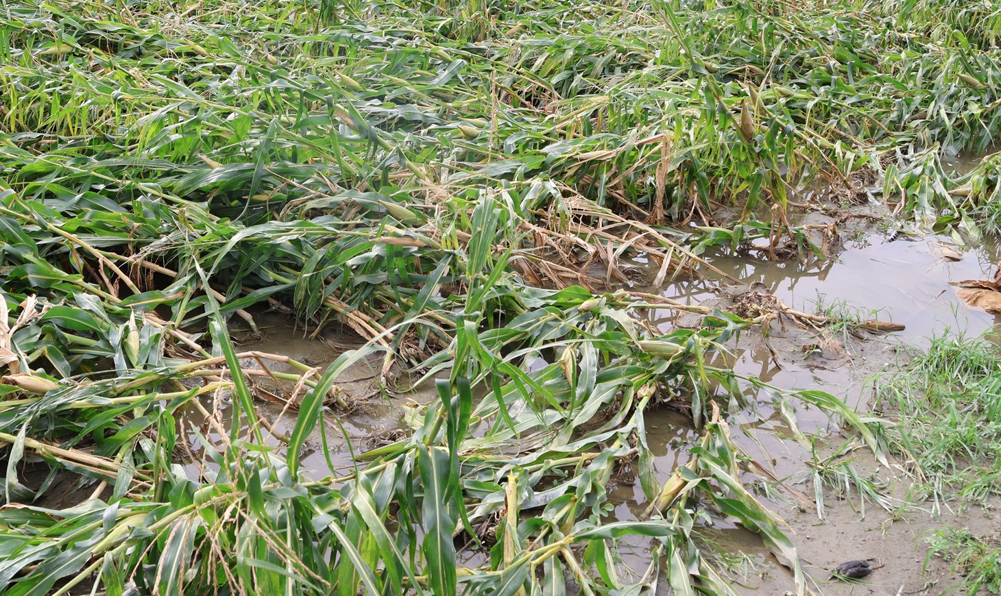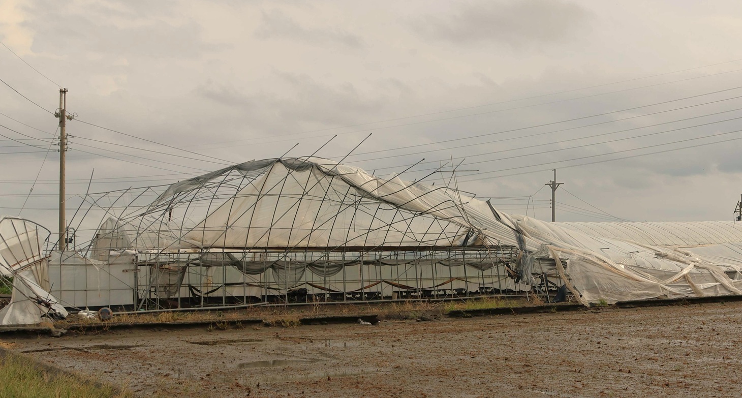 丹娜絲颱風侵襲期間,雲林沿海地區風勢猛烈,宜梧測站更記錄到相當於17級強風的每秒57.3公尺陣風,導致全縣多處農地嚴重損。(圖/記者蘇峯毅攝)根據統計,本次災害造成食用玉米、硬質玉米、青割玉米、青蔥、香蕉及溫網室設施等多項作物嚴重受損。依據農業部公告適用的天氣參數核算,雲林已達災害性天氣標準的作物品項共計16種,包括硬質玉米、高粱、柑橘類、番荔枝、番石榴、木瓜、蓮霧、百香果、竹筍、龍鬚菜、芋頭、青蒜、韭菜等。