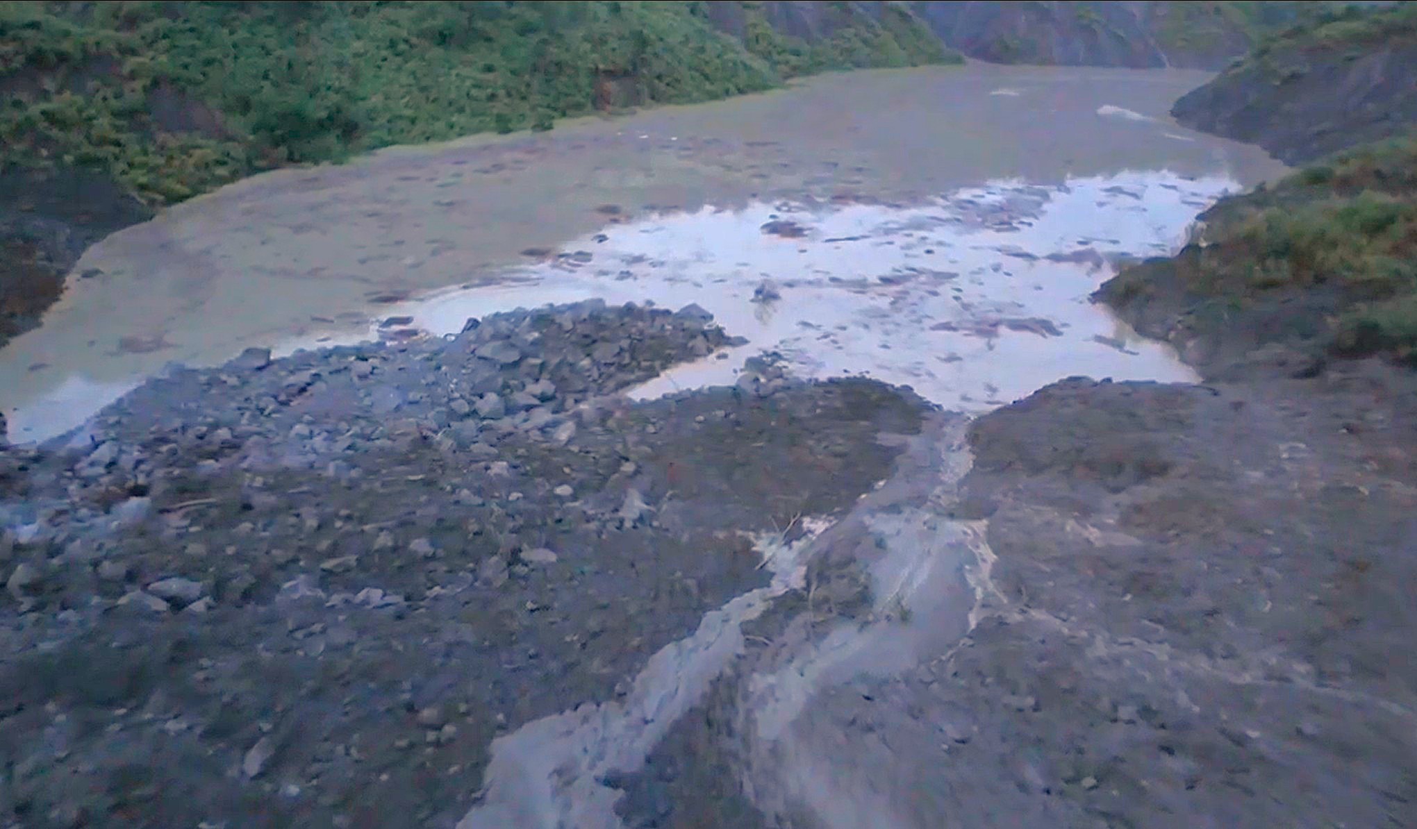 堰塞湖具有突發性與不可預測性,若發現河水混濁、流速異常或水位驟降等徵兆,應立即遠離河道並聽從地方政府指揮,確保生命安全。(圖/記者蘇峯毅翻攝)