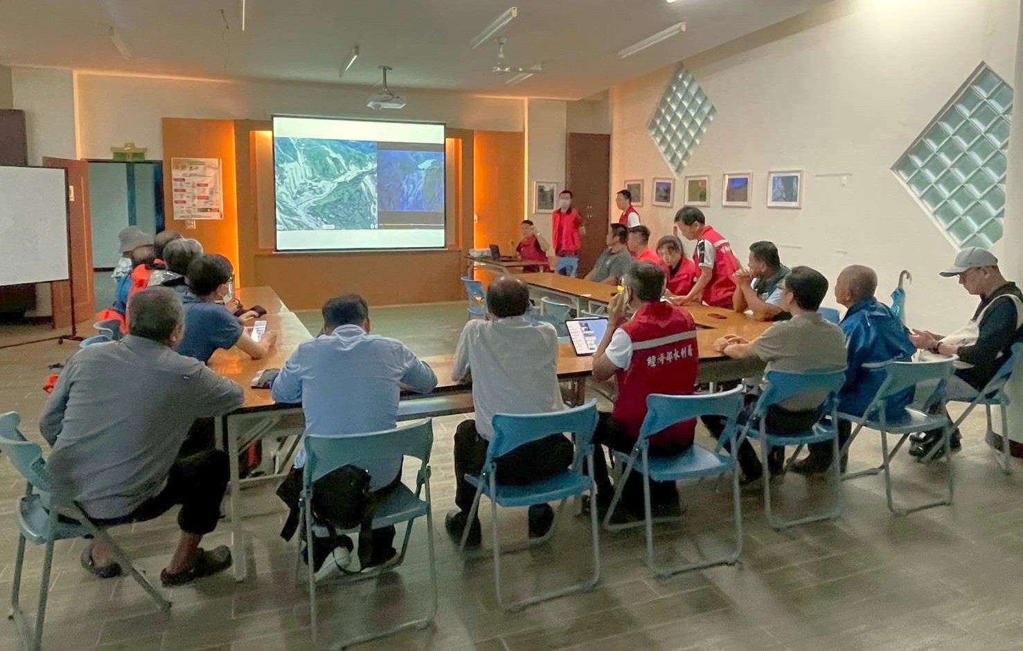 水利署副署長率應變小組與雲林縣政府、古坑鄉公所及草嶺村村長等相關人員前往現場會勘後,並研擬具體處理對策。(圖/記者蘇峯毅翻攝)