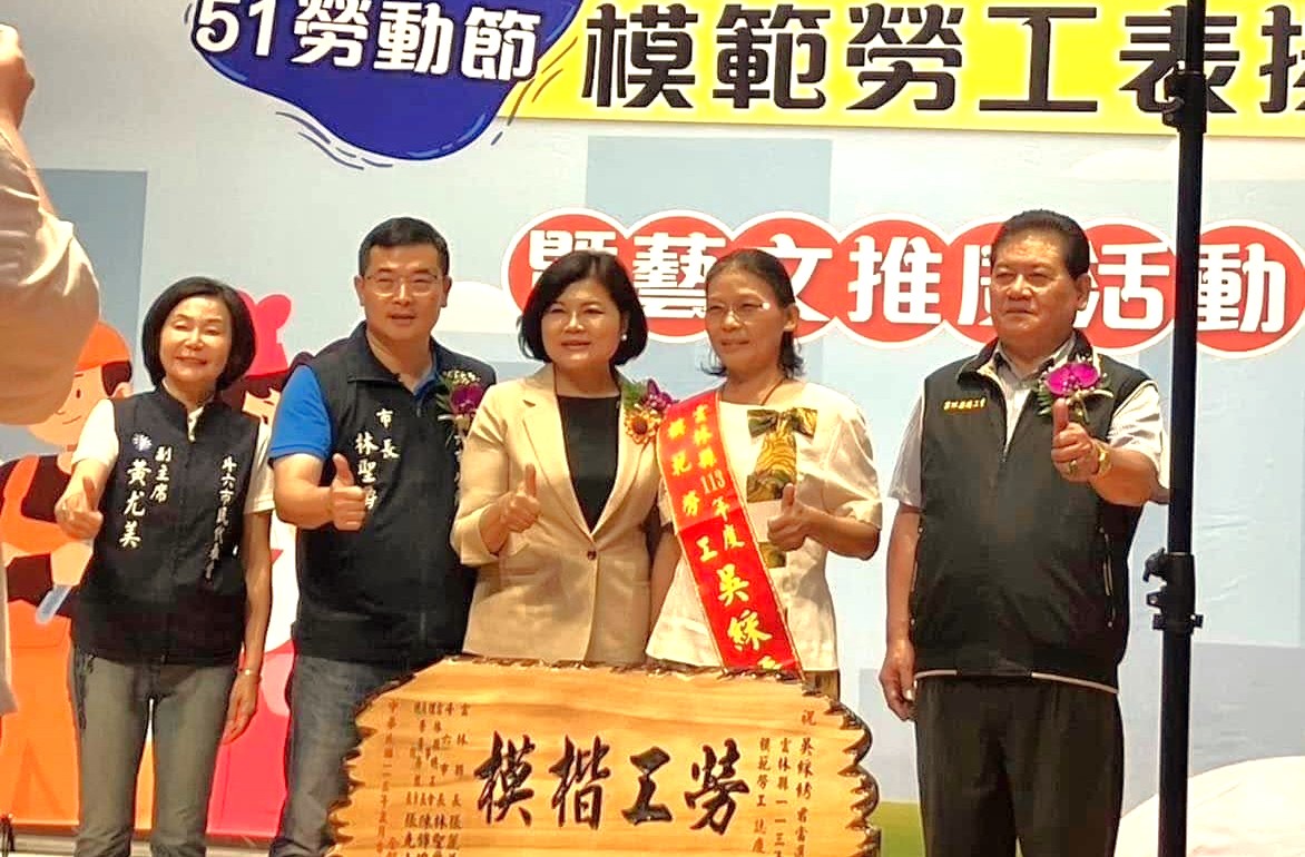 工友吳彩綉在113年更榮獲雲林縣模範勞工殊榮,由縣長張麗善與警察局長李建民親自表揚,足見其工作表現深獲肯定。(圖/記者蘇峯毅翻攝)
