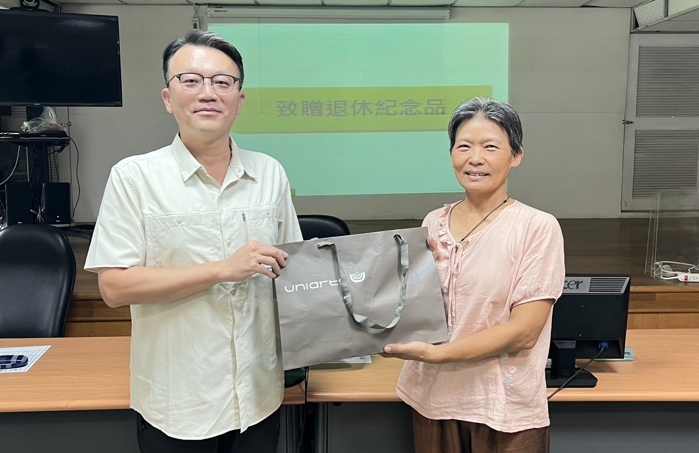 分局長閻百川則以感性話語表達敬意,肯定吳彩綉在平凡崗位上展現不凡的工作態度,讓整個辦公環境總是維持整潔有序。他也誠摯祝福吳員退休生活順心愉快,並歡迎她隨時回來探望這個熟悉的大家庭。
