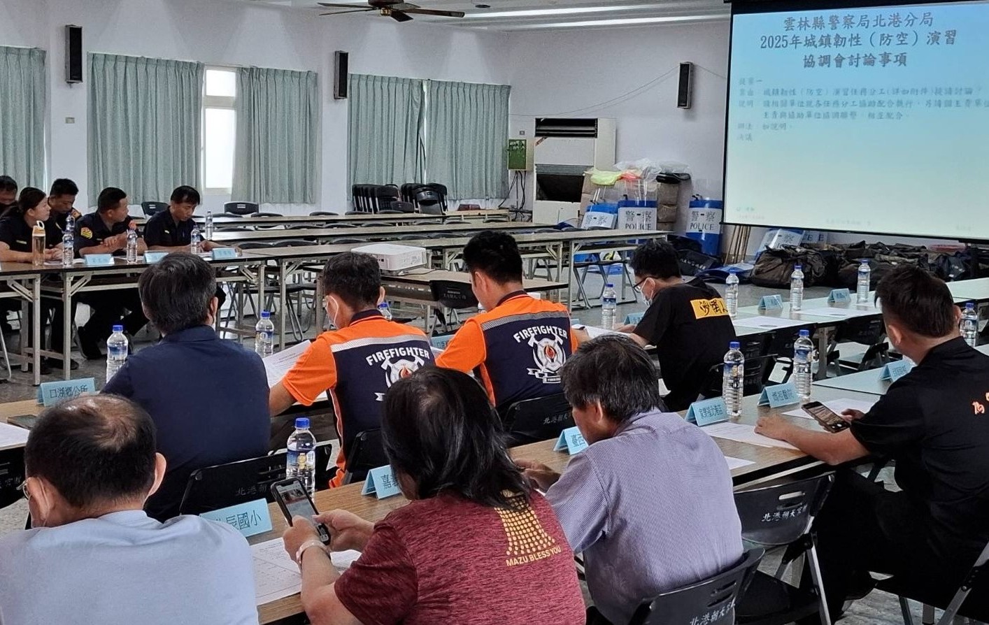 北港分局為強化城鎮韌性(防空)演習應變能力,10日上午舉行協調會議,提前部署演習細節。(圖/記者蘇峯毅翻攝)
