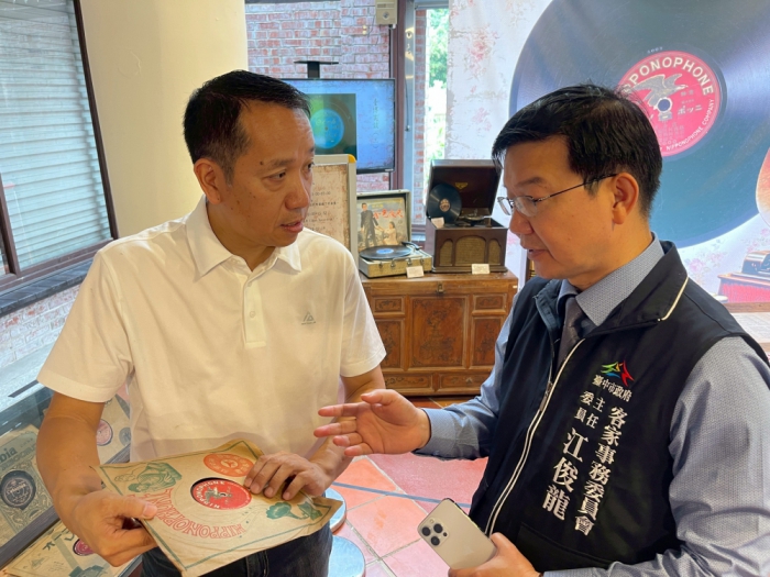 【記者林獻元台中報導】台中市政府客家事務委員會13日於東勢客家文化園區舉辦《留下台灣第一聲音~曲盤裡肚个客家愛情音樂同日常》開幕式,帶領民眾穿越時光,重返百年前的聲音記憶,感受早期客家音樂的文化魅力。市府客委會副主委魏瑞伸出席開幕式並表示,這次特展非常特別,透過蟲膠唱片與留聲機,我們彷彿乘著旋律回到蟲膠歲月,聽見那個時代的聲音與愛情。