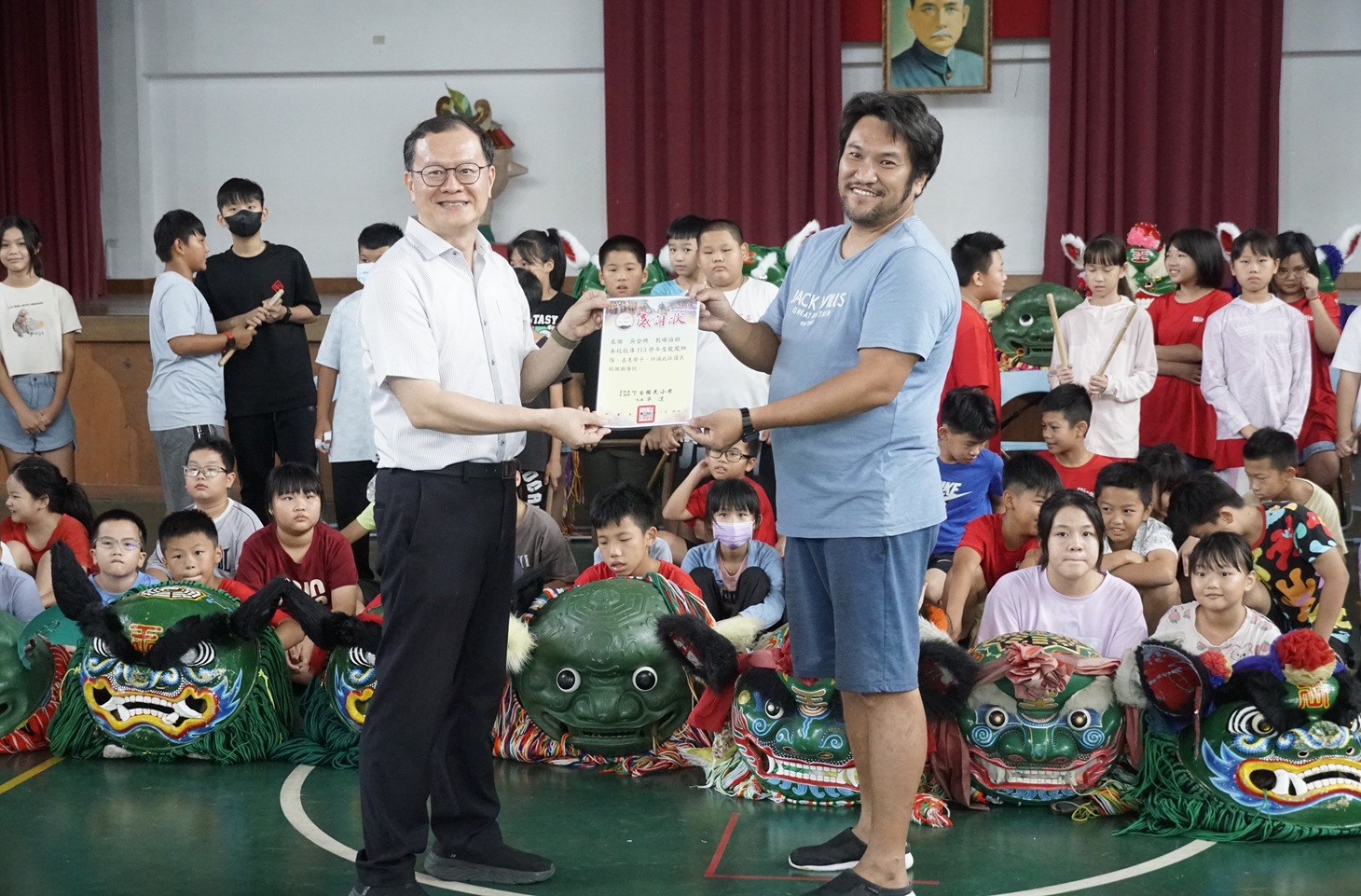 下崙國小校長車達感謝總教練吳登興聯合雲林苗栗為台灣民俗體育教育帶來創新典範。