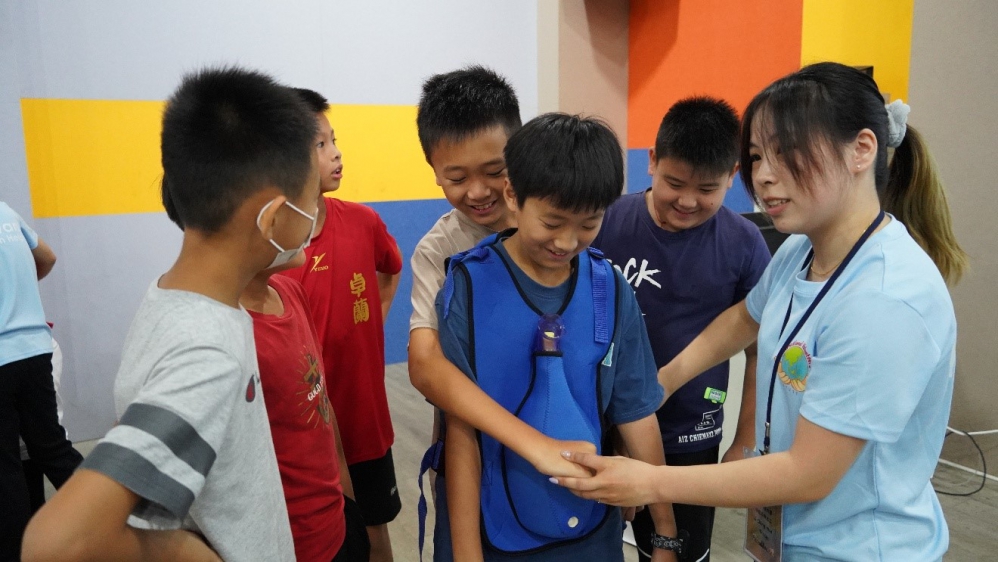 為了提高互動性與學習樂趣,志工隊靈活運用多首流行熱門歌曲,引導孩子們隨節奏律動,讓整場活動氣氛熱絡、歡笑不斷。此外,更設計「急救知識搶答賽」讓學童在遊戲中記憶關鍵步驟,從確認現場安全、呼救程序、按壓節奏等皆有系統複習,有效強化知識內化。現場孩子們踴躍舉手搶答,充分展現他們對急救觀念的吸收與實踐熱情。
