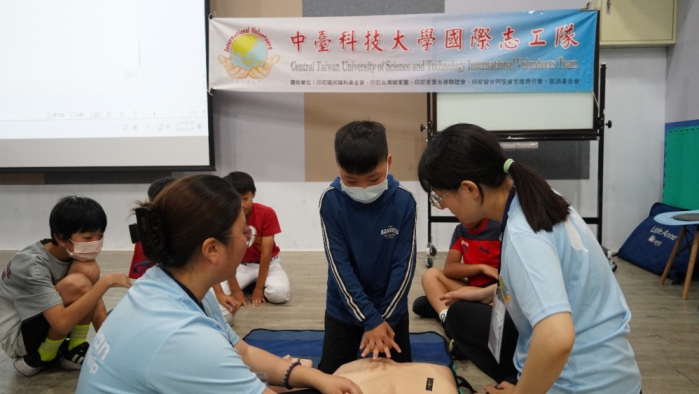 【記者張原銘、張皓傑台中報導】在急救知識普及化日益重要的今日,中臺科技大學印尼國際志工隊15日走入苗栗縣卓蘭國小,舉辦「救命小英雄」急救教育推廣活動,透過創意教學與實作訓練,培養學童面對緊急狀況的應變力與自救能力。本次活動由中臺科大學士後護理系林冠語主任與黃良圭老師帶領,並與卓蘭國小詹正淑護理師攜手合作,展現醫護教育結合在地社區的實踐行動。