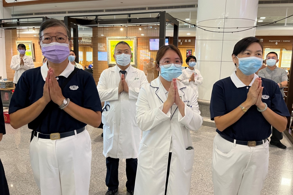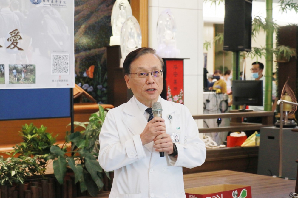 惜福市集活動前播放嘉南地區風災與慈濟人救援新聞畫面,醫護及志工雙手合十誠心為災民祈福。簡守信院長表示,「丹娜絲」的菲律賓語是體驗和感受的意思,帶來的災情讓人感受世間無常、人間的苦,我們更要體驗眾人同心協力凝聚愛的力量去克服災難的過程。中區慈濟人醫會及榮董召集人紀邦杰指出,捐贈物資的人有情、購買的人有義,情義相挺人間有愛。