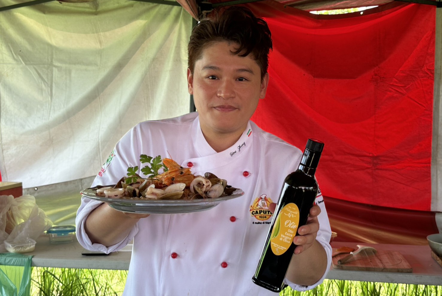 Gino Pizza君諾食品執行長鄭羽辰為雲林出身,感謝芥菜種會青農團隊種植優質燉飯米,令義式料理蘊含台灣風土與人情溫度。(圖/記者蘇峯毅攝)