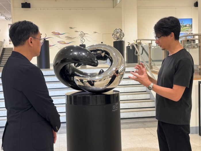 【記者張原銘、張皓傑台中報導】從工業設計師蛻變為屢獲國際金獎藝術家的郭國相,即日起在大墩文化中心舉辦「心之所相-郭國相創作個展」,此次首度公開榮獲義大利A-Design國際設計大賽金獎的雕塑鉅作〈旋華〉,並展出多件大型立體雕塑與馬賽克鑲嵌壁掛之代表作。文化局長陳佳君昨(26)日出席開幕式表示,本展呈現郭國相跨越地域與語言限制,走向國際藝術舞台的創作能量,邀民眾走進展場,近距離感受國際金獎作品的魅力與城市美學。