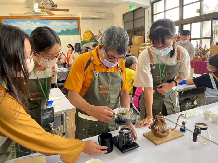 團隊結合其長期耕耘於高齡健康照護領域的專業背景,設計出別具溫度的「齡活處方籤」系列活動。所謂處方籤,亦可說是處「芳」──讓芳華不老,讓記憶綿延。活動中邀請社區長輩親手沖泡咖啡、製作點心、分享人生故事,透過味覺、嗅覺與視覺三感交融,讓長輩成為地方記憶的守護者,也成為世代共學的領航人。
