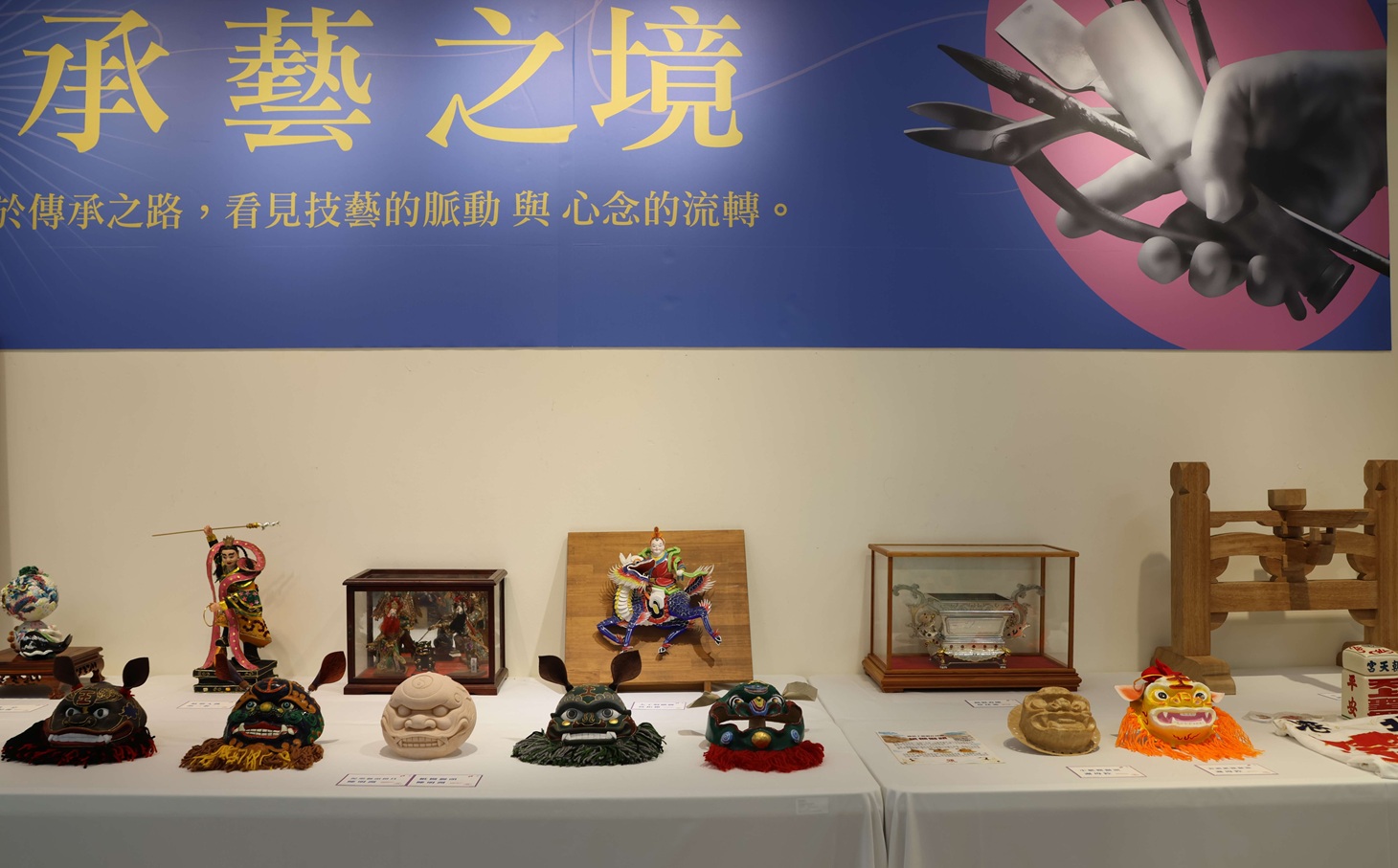 此次展覽展現多樣技藝,包括傳統彩繪、剪黏、錫工藝、粧佛、交趾陶、紙塑神像、風箏、鼓陣、吹奏、燈籠、白鶴獅、龍獅、獅頭製作、大木作、鑿花及藝閣等16項領域。每件展品皆蘊含藝師累積多年的技術經驗與文化記憶,從神像雕繪的神情到鼓陣節奏的傳承,體現地方信仰、生活智慧與工藝精神。