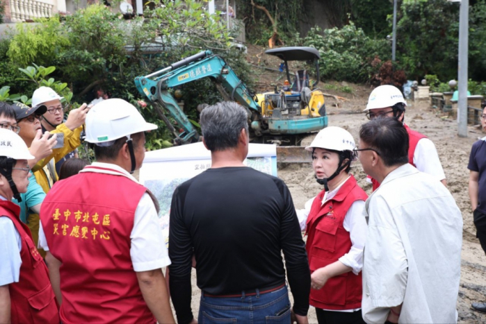 市長盧秀燕心繫災後復原狀況,2日再會同相關單位前往北屯、石岡2處遭滑落土石波及民宅勘災,並要求相關單位在安全無虞情況下儘速復建,同時協助災民恢復家園,保障居民安全。