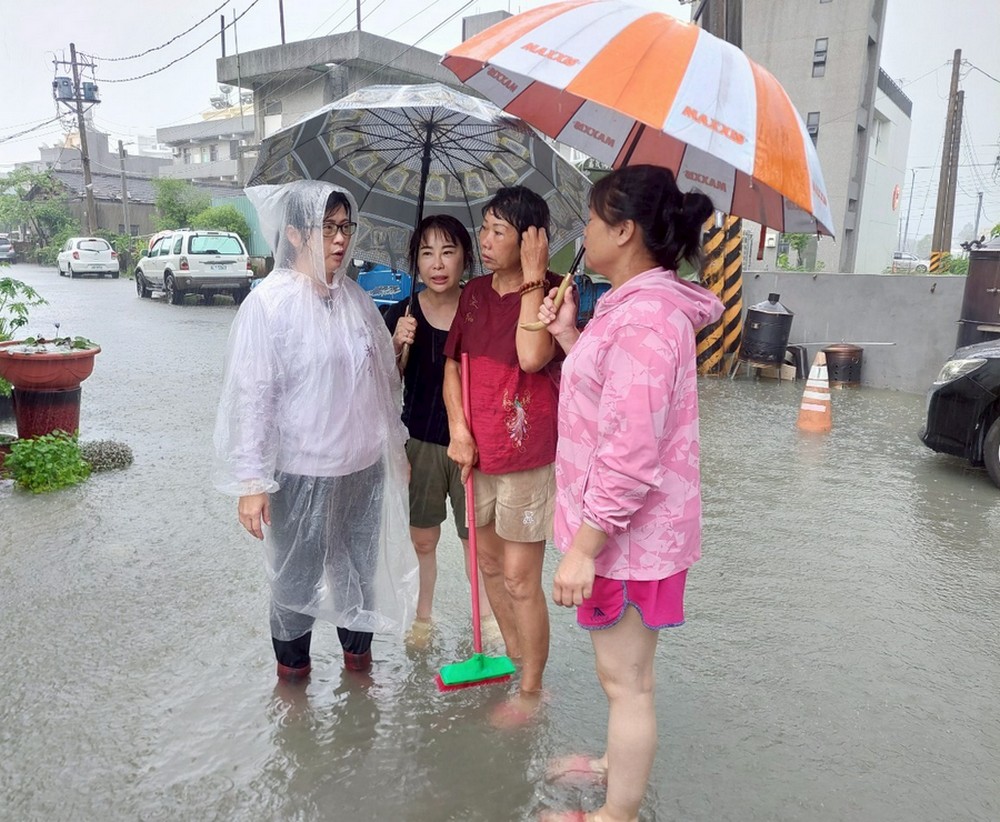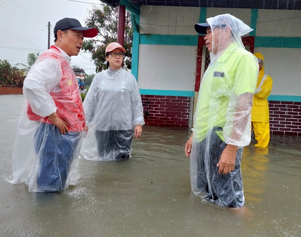 太保市在丹娜絲颱風及0728西南氣流豪雨事件重創,縣長翁章梁視察社區給予關懷。(圖/太保市公所提供)