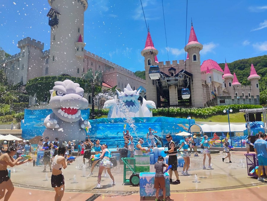 遠雄海洋公園年度盛事「2025海洋冰風暴5-怪獸聯盟最終戰」暑假限定登場,邀請全台遊客一起放肆開玩,嗨翻整個夏天!今年,高達十米的哥吉拉大型氣偶強勢回歸,氣勢震撼全場,成為遊客必拍亮點;園區人氣角色「冰怪 ICE」也現身與大小朋友互動,炒熱現場氣氛。園區化身為怪獸聯盟的決戰戰場,大型水花派對結合音樂、舞蹈與沁涼水花,打造最歡樂的清涼派對,只要換上輕便服裝、手持水槍,就能變身怪獸戰士,投入一場夏日限定的清涼對戰,盡情釋放活力,留下最難忘的夏日回憶!