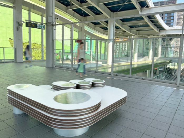 中捷公司說明,藝術家具不僅可傳達設計的邏輯與美學教育的意涵,更具備實用功能。此次創作以「點、線、面」為語言,不僅提升空間辨識度,也讓旅客在捷運站日常的行走與停留中,自然地與藝術發生碰撞,使藝術不再只是觀賞的對象,更是一種日常陪伴與溫柔點綴。