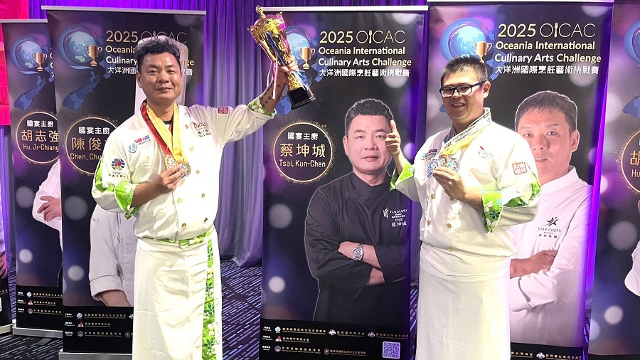唐苑中餐廳主廚蔡坤城與林彥兆廚師「2025大洋洲國際烹飪藝術挑戰賽」榮獲1特金2金2銀