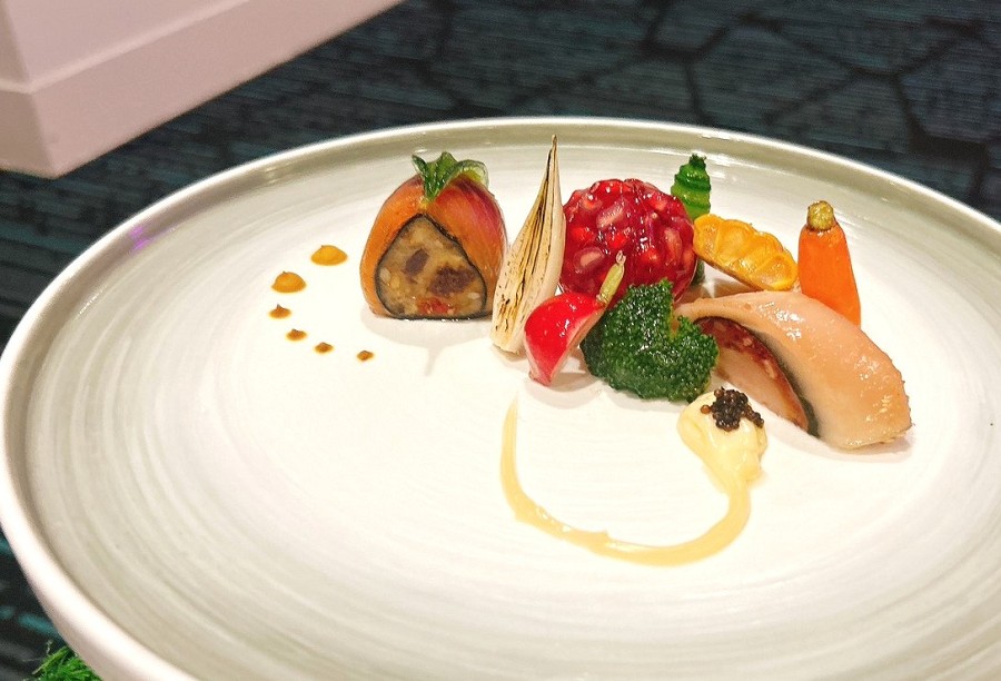 林彥兆廚師表現同樣亮眼,以〈鮮鳳雙重奏〉與〈雙鳳呈祥〉分別榮獲前菜與主餐組銀牌獎,更以融合山海食材與台灣原住民香料的〈山海乾坤雙重奏〉勇奪異國料理展示組金牌,展現新世代廚師的多元視角與技藝突破,將中式食材與西式技法巧妙交織,搭配別具巧思的擺盤設計,不僅呈現料理藝術的精緻樣貌,也賦予作品深刻的文化內涵與在地精神,