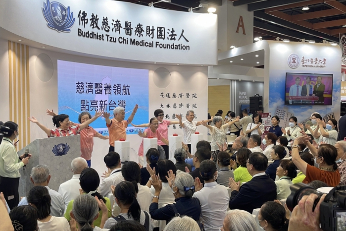 【記者張原銘、張皓傑台中報導】2025年第二屆高齡健康產業博覽會8日盛大開幕,慈濟醫療體系以「慈濟醫養領航,點亮新臺灣」為主題參展,呈現在高齡醫療、長照服務與智慧科技整合上的創新成果。衛福部長邱泰源親臨揭牌儀式,肯定慈濟醫療體系多年深耕社區、推動高齡健康促進與照護創新的成果,盛讚慈濟是推動長照的重要推手。北區長照關懷據點平均年齡超過八十歲的長輩,更在現場表演歌舞律動展現青春活力,贏得熱烈掌聲!