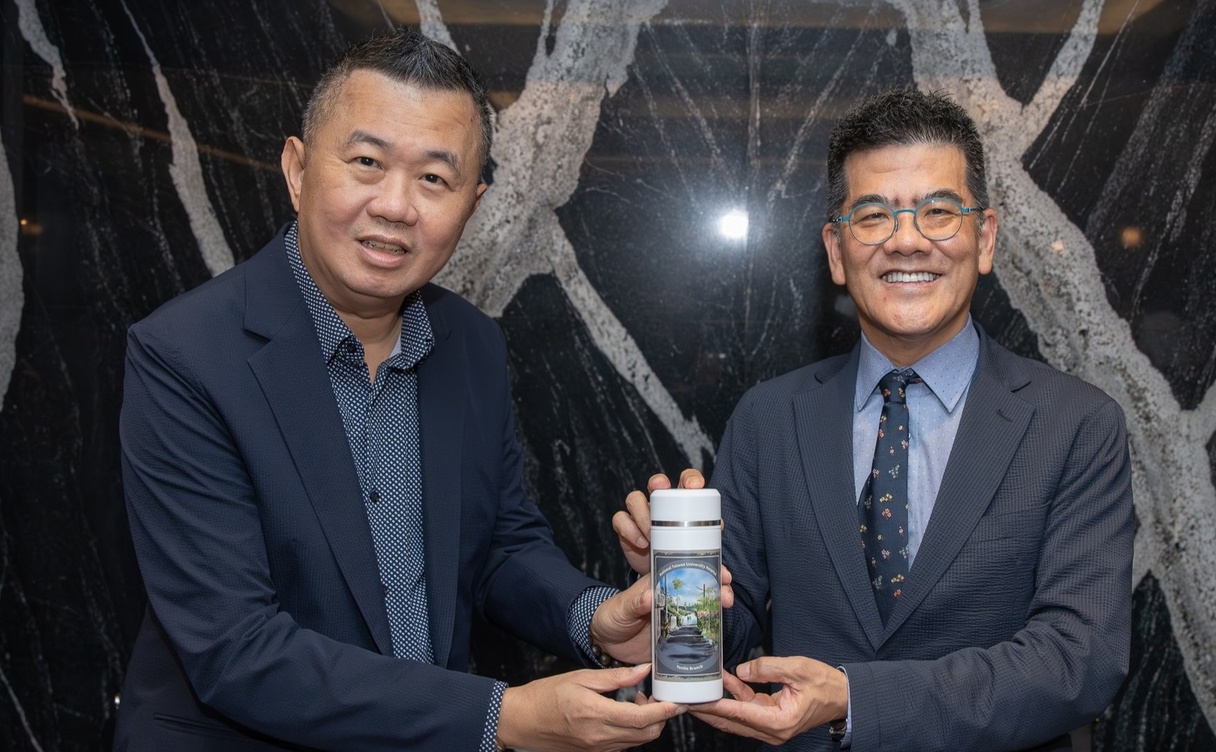 臺大雲林分院院長馬惠明(右)致贈主委林安樂紀念禮品以表達感謝之意。
