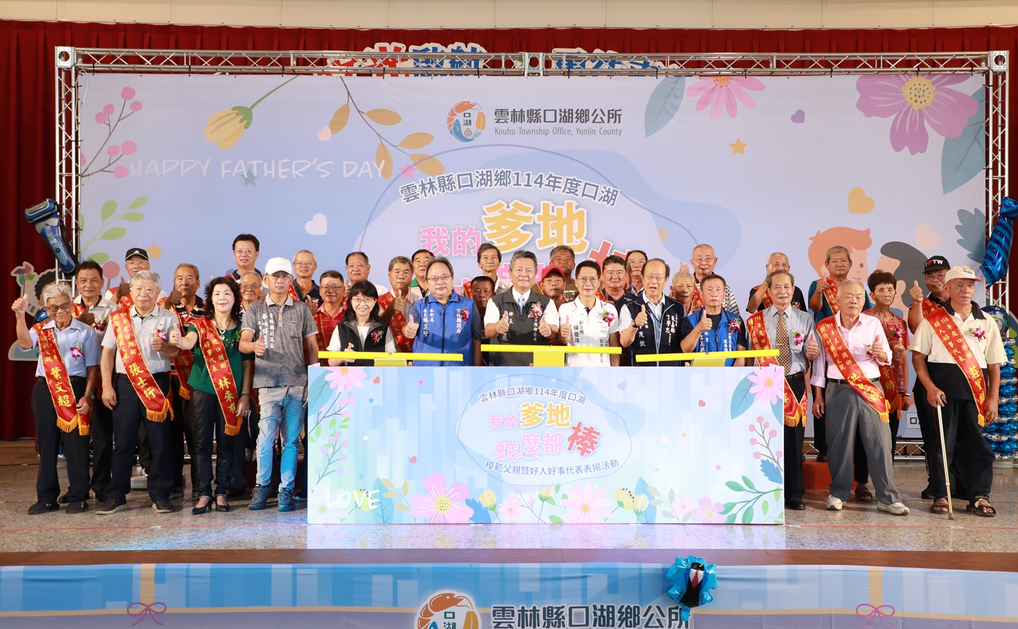 【記者蘇峯毅/雲林報導】口湖鄉公所於8月10日上午在文光國小舉辦114年度「我的爹地蛇麼都棒」模範父親暨好人好事表揚活動,為父親節提前暖心揭幕。活動以口湖鄉立幼兒園小朋友活力四射的「十六蹲」舞蹈開場,天真笑容與整齊動作讓現場笑聲與掌聲此起彼落。隨後,鄉長李龍飛、鄉民代表會主席王溪邊及多位嘉賓與受獎代表共同啟動象徵希望與活力的拉桿,為活動揭開序幕。